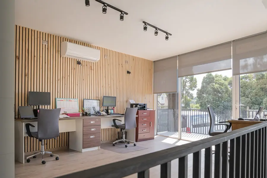 Una restauración que transformó una casa del 2000 en una sede corporativa funcional y cálida. En este proyecto se modernizaron las estructuras existentes y se priorizaron colores claros con toques cálidos para crear un ambiente laboral agradable.